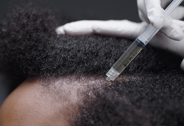 Our scalp detox treatments help by clearing build-up that keeps inflammation active. While microneedling with growth-boosting actives strengthen signalling around the follicles, improving their ability to produce stronger strands. Microneedling also aids circulation which requires particular attention in men, as the hairline and crown naturally have lower blood flow.